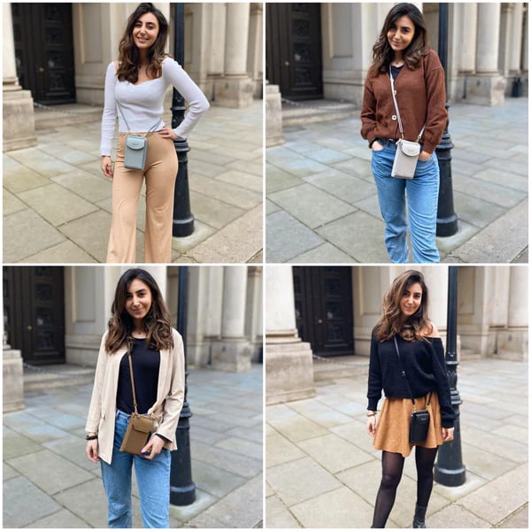 It has room for your cards, cash, glasses, keys, passport and much more. It also has an external pocket with a convenient push-button, to safely store your mobile phone.