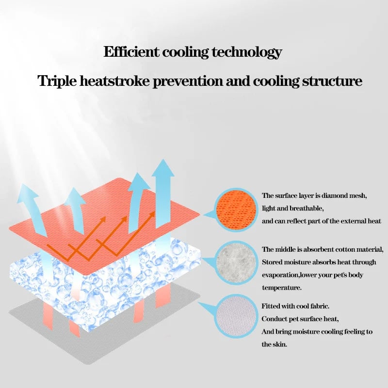 ✅ Dog cooler with 3 layer cooling fabric, Keeps your pet cool in hot weather through natural evaporative cooling and heat reflection.