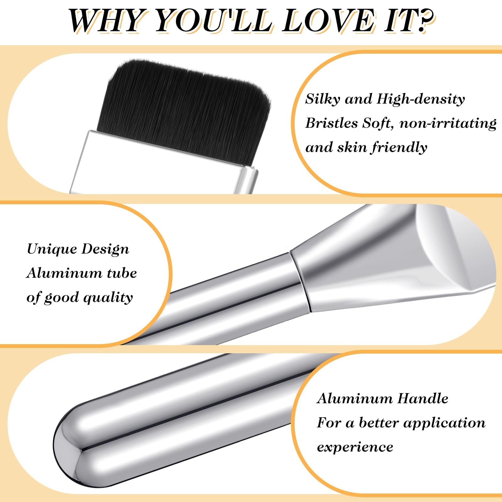 【Multiple Uses】Our face makeup brushes have a very wide range of applications. Foundation makeup brush can not only be used to apply powdered cosmetics such as blush, eye shadow, and foundation, flat makeup brush but also to apply liquid cosmetics such as essence and skin cream.