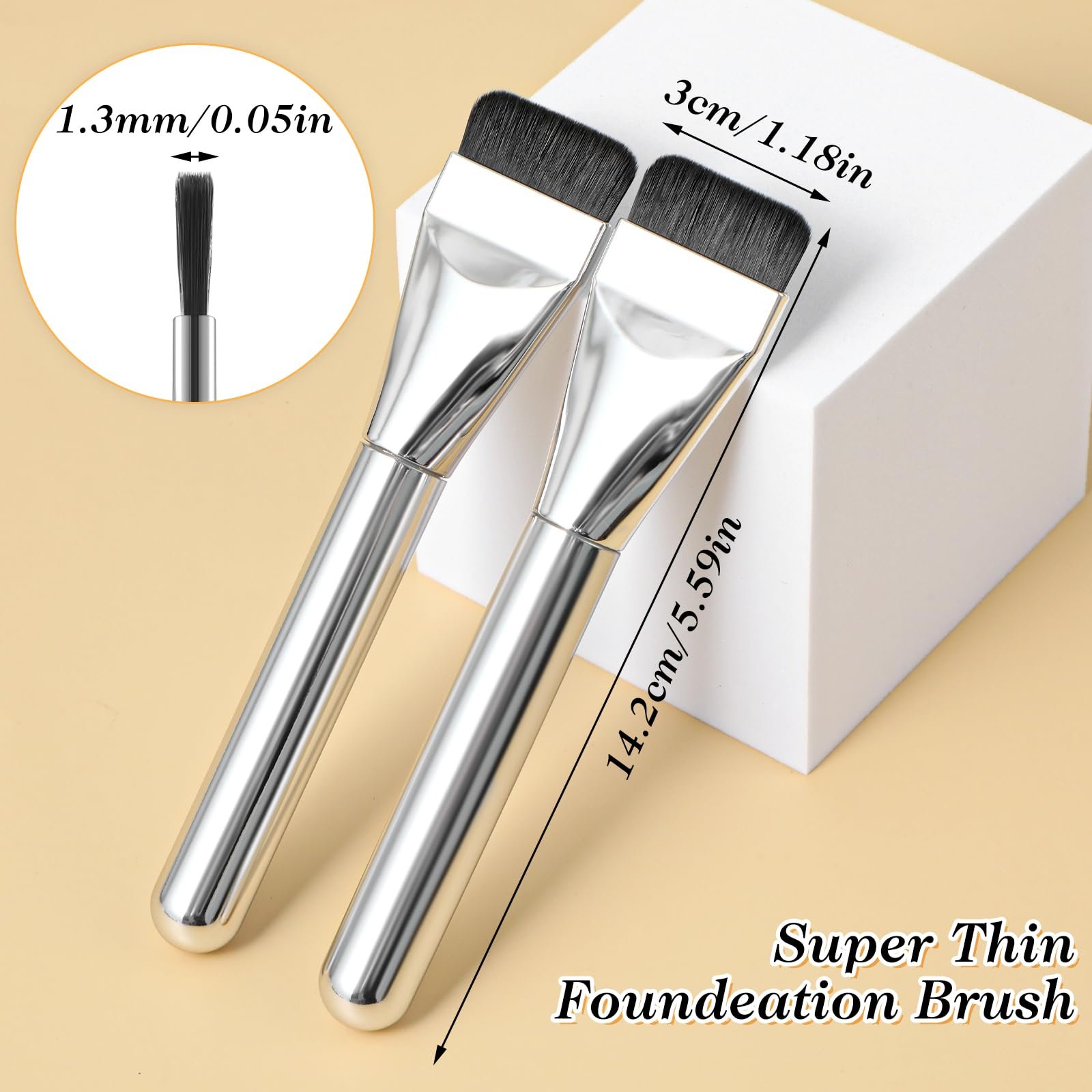 【Soft Bristles】Our thin makeup brush bristles are made of soft nylon material, travel foundation brush will not cause any harm to your skin, and each bristle is firmly fixed on the brush head, so there is no need to worry about the bristles falling off frequently.