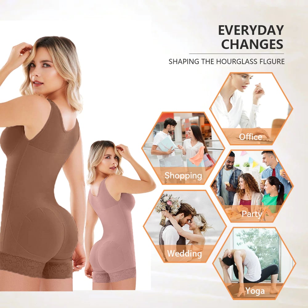 🩱Lace edges on the legs and silicone backing to prevent rolling up · outline the waist, buttocks and thighs; control the uplift of the abdomen and correct the back posture