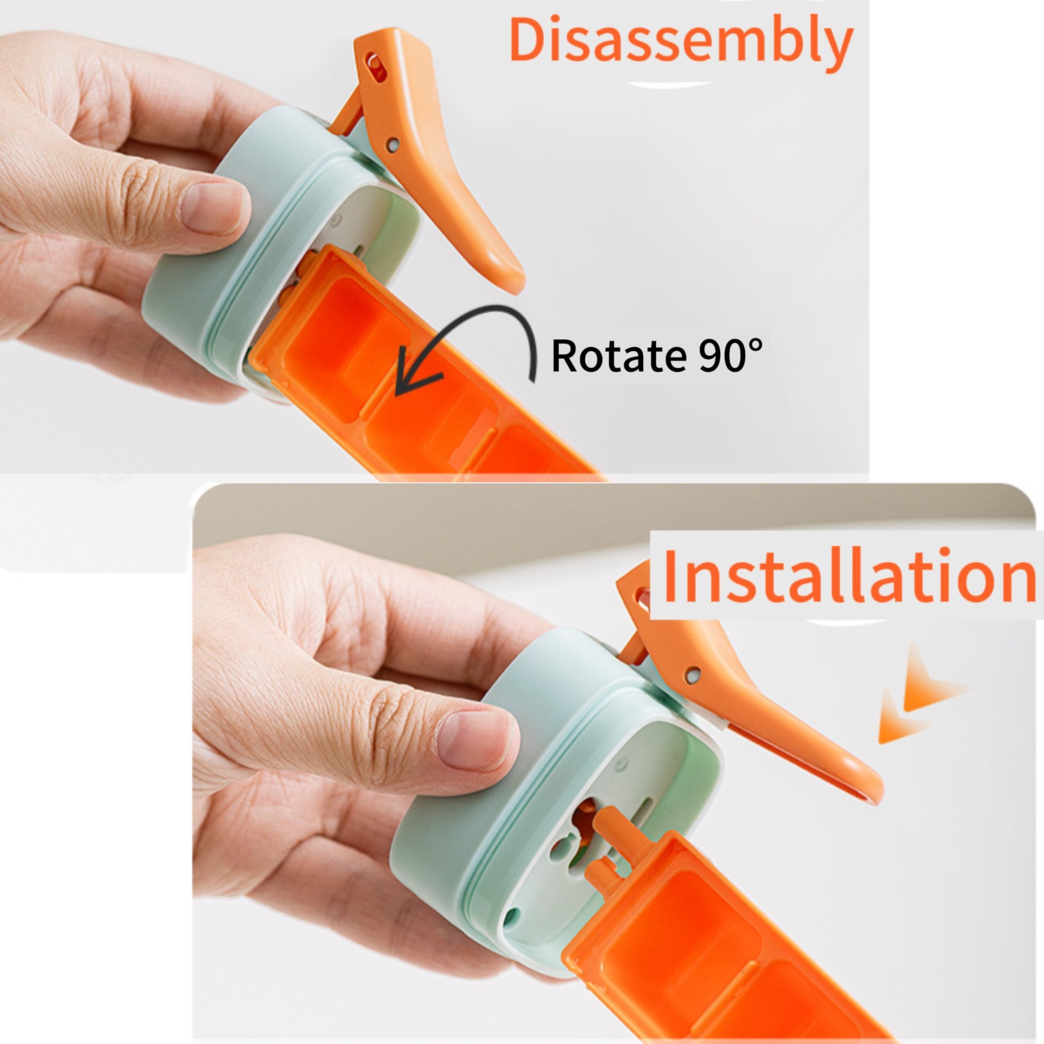 This ice cube tray is removable and easy to clean, easy to rotate 90 degrees to remove the accessories, cleaning every dead corner, so you can use more peace of mind.