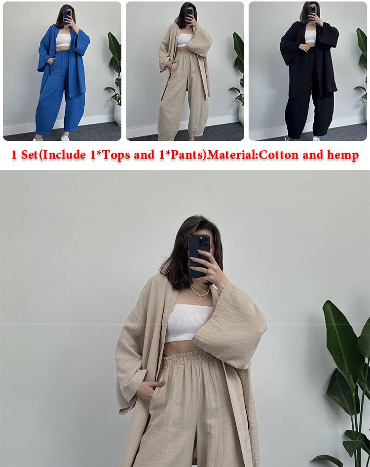 🔥Black Friday Promotion 49%OFF🔥Solid color cotton linen loose two piece set