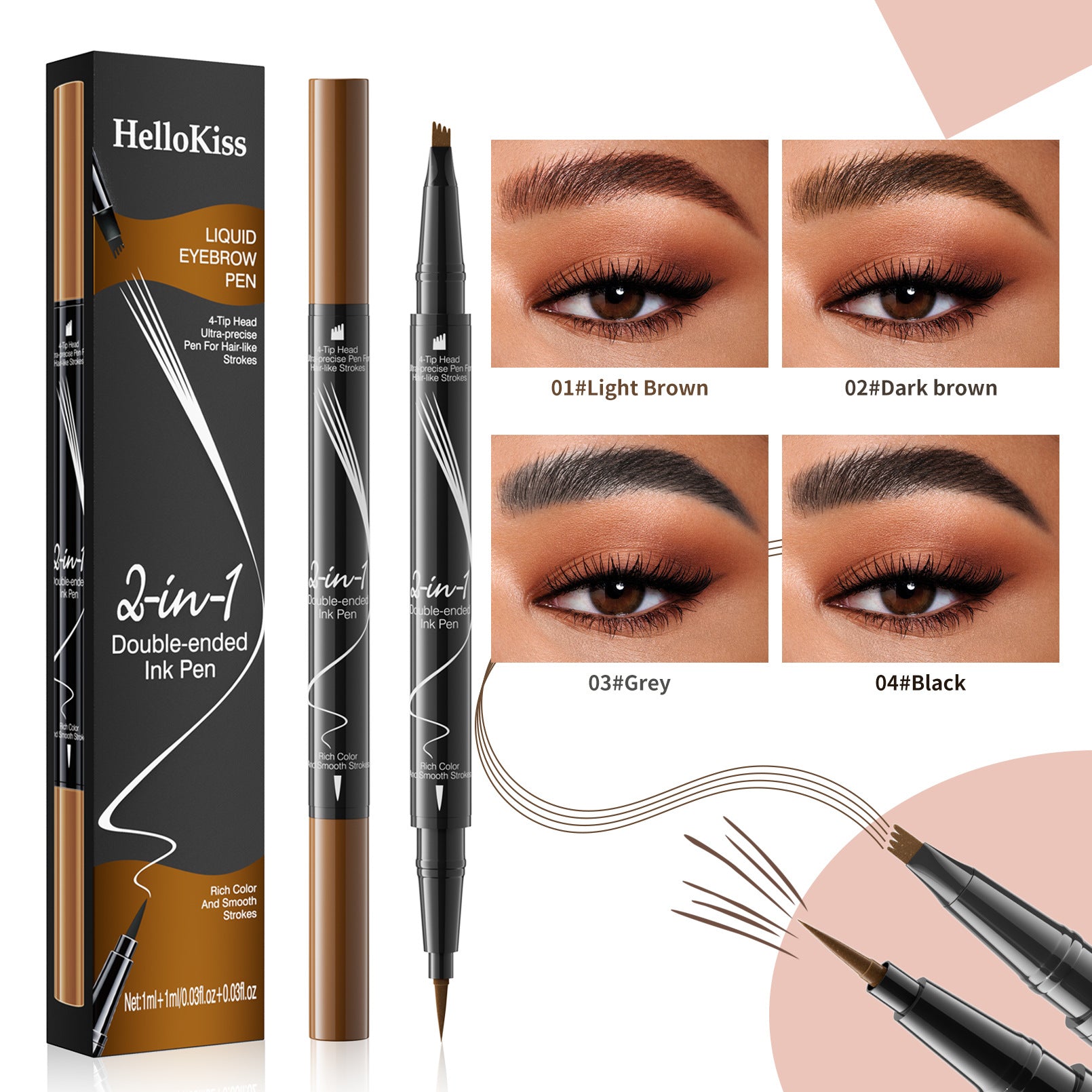 - Two Fine Tip Design - Create hair-like strokes that look just like your natural brows. Transform brows from shapeless & undefined to filled & defined eyebrows.