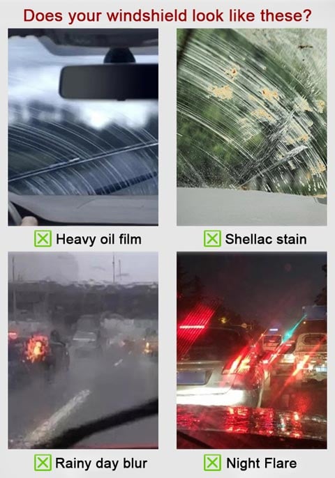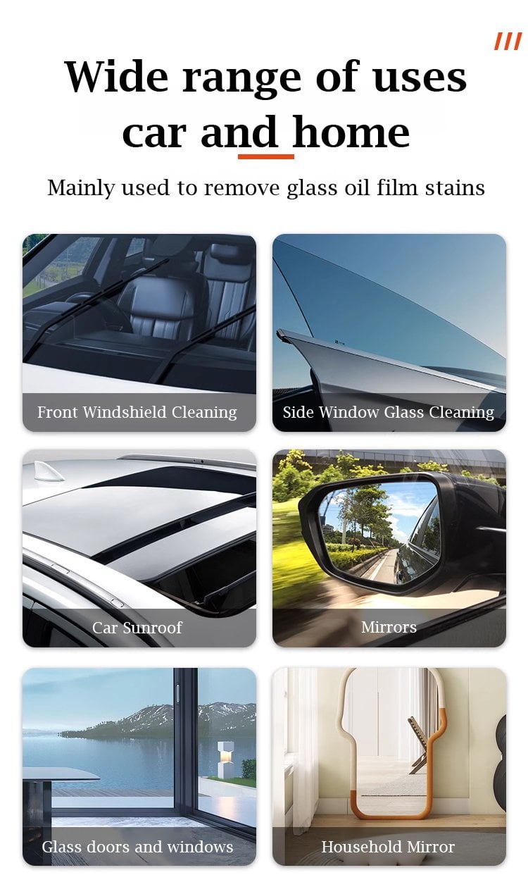 WIDE APPLICATIONS: Specifically formulated to effectively dissolve and remove stubborn stains and aging coatings on glass, such as watermarks, rain stains, bird droppings, shellac, oil stains, etc. Suitable for the front windshield, side windshield, car sunroof, household glass, etc. Suitable for cars, trucks, SUVs, and more.