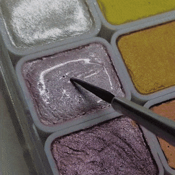 Just add a touch of water to reactivate your shimmer watercolor paints and you’re ready to begin.