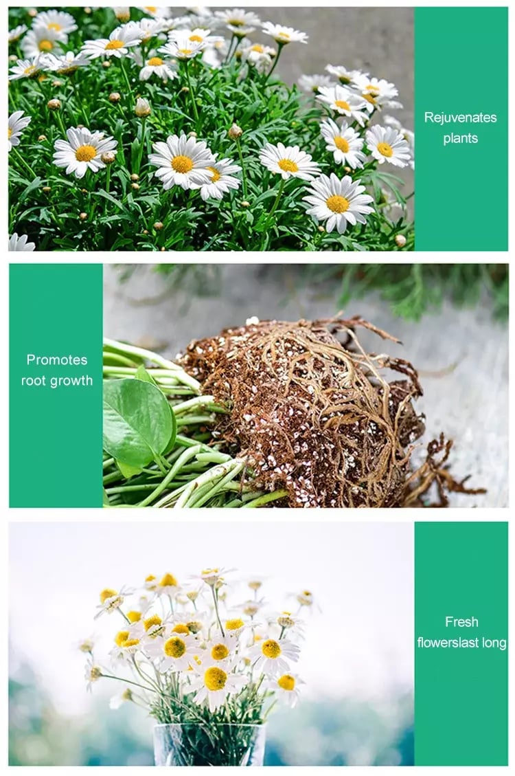 As a plant and soil boosting compound, it will increase root growth rates and maintain the overall health of growing plants. This plant growth enhancer supplement gets all the nutrients your plants need to grow and is formulated to increase plant vigor, lawn greening and growth, flower development sites and garden yields, and is designed to increase plant resistance and drought tolerance.