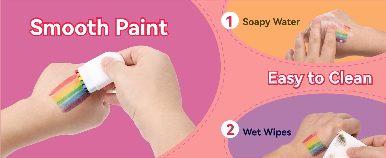 Our product has excellent durability and resists smudging from sweat. However, it is also very easy to clean. Simply wipe off the face paint with tissue paper, soap, or facial cleanser - it’s quick and easy.