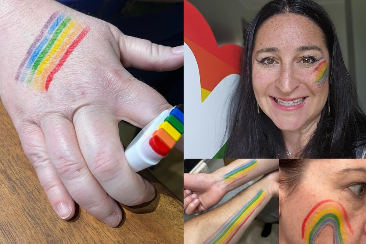The pride flag face paint is made from high-quality paraffin wax, 100% non-toxic and safe, is highly pigmented and easy to apply.