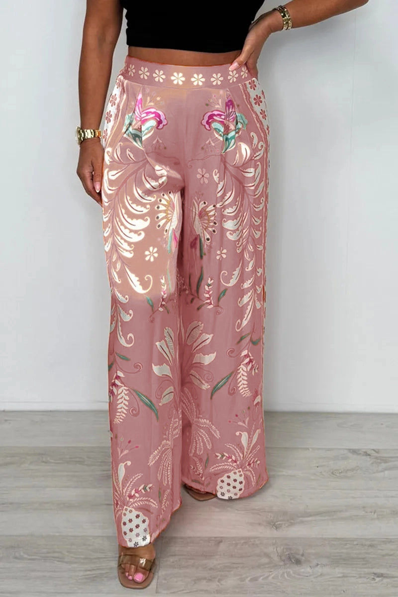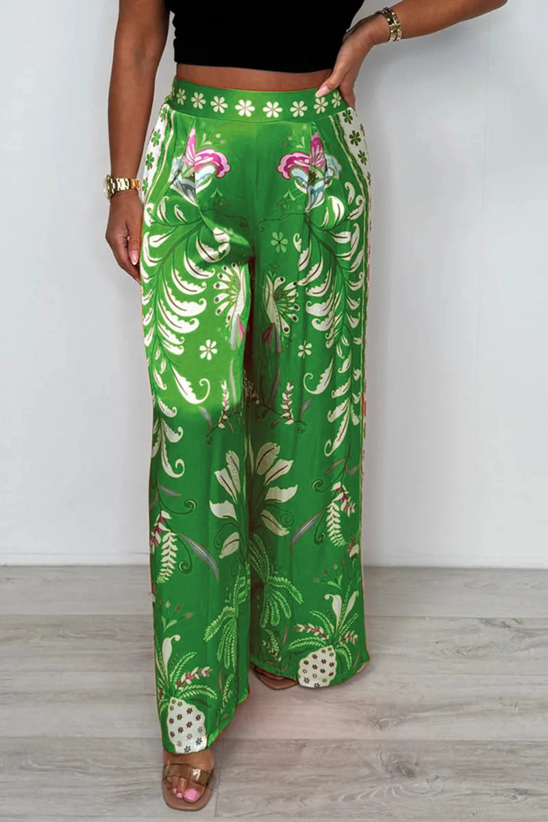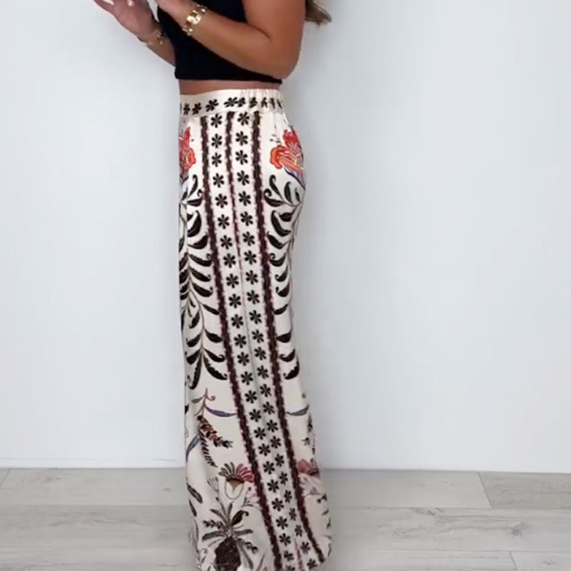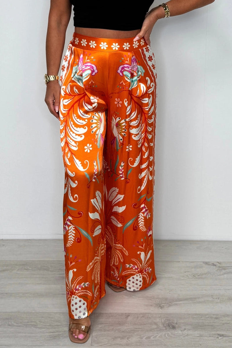 Package Includes: 1×Luxe Floral-Butterfly Print Satin Culottes
