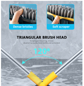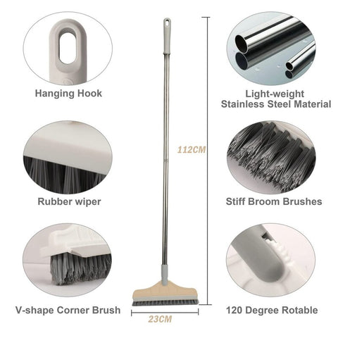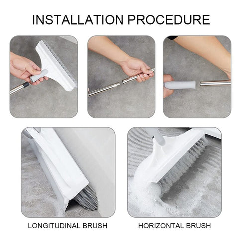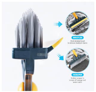 Served as brush and scraper, after brushing the floor, you can easily scrap the sewage. 120 degree rotating brush head, triangular convex bristles, rubber soft plate.