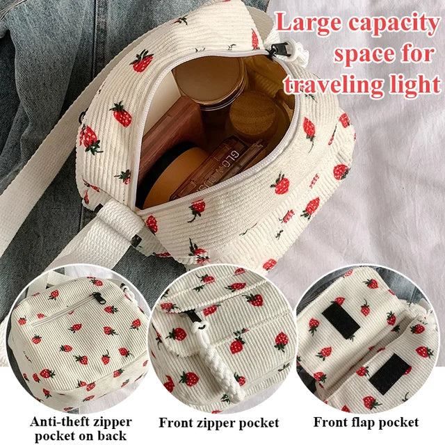 VERSATILE & STYLISH: Ideal for casual outings, shopping, or a day out with friends, this strawberry print bag adds a fun, fashionable pop of color to your everyday wardrobe without the bulk.