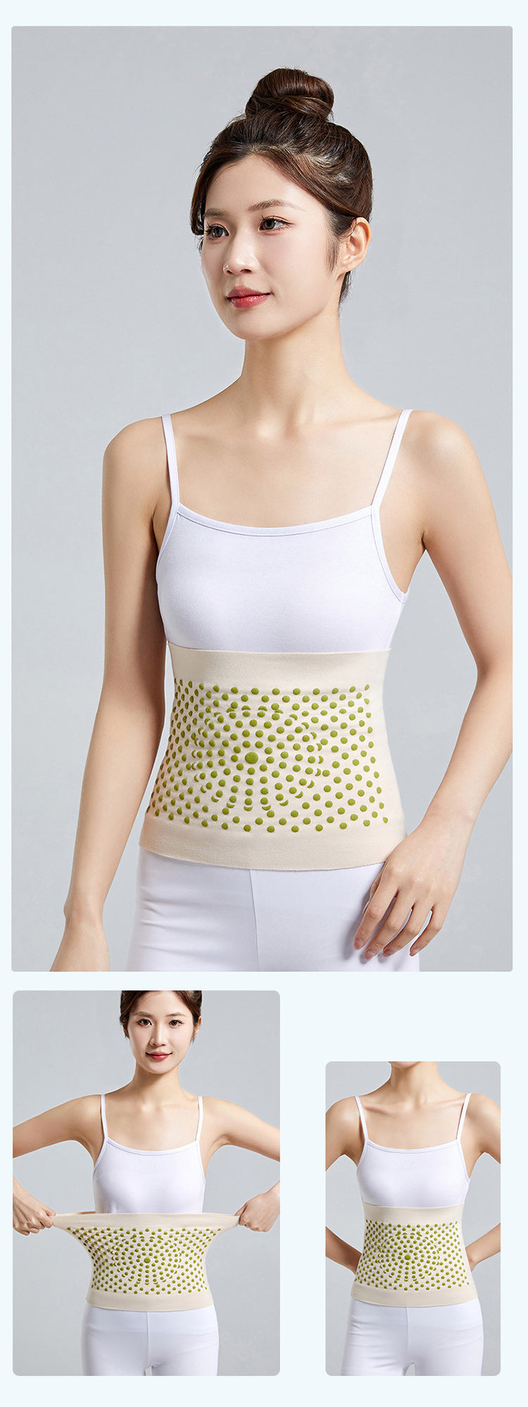 MUGWORT DOTS FOR SOOTHING WARMTH: Infused with mugwort dots, this waist protector provides natural warmth and soothing relief to your lower back and abdomen. Mugwort is known for its therapeutic properties, helping to promote relaxation and ease discomfort. (This function is limited to the style with mugwort dots)