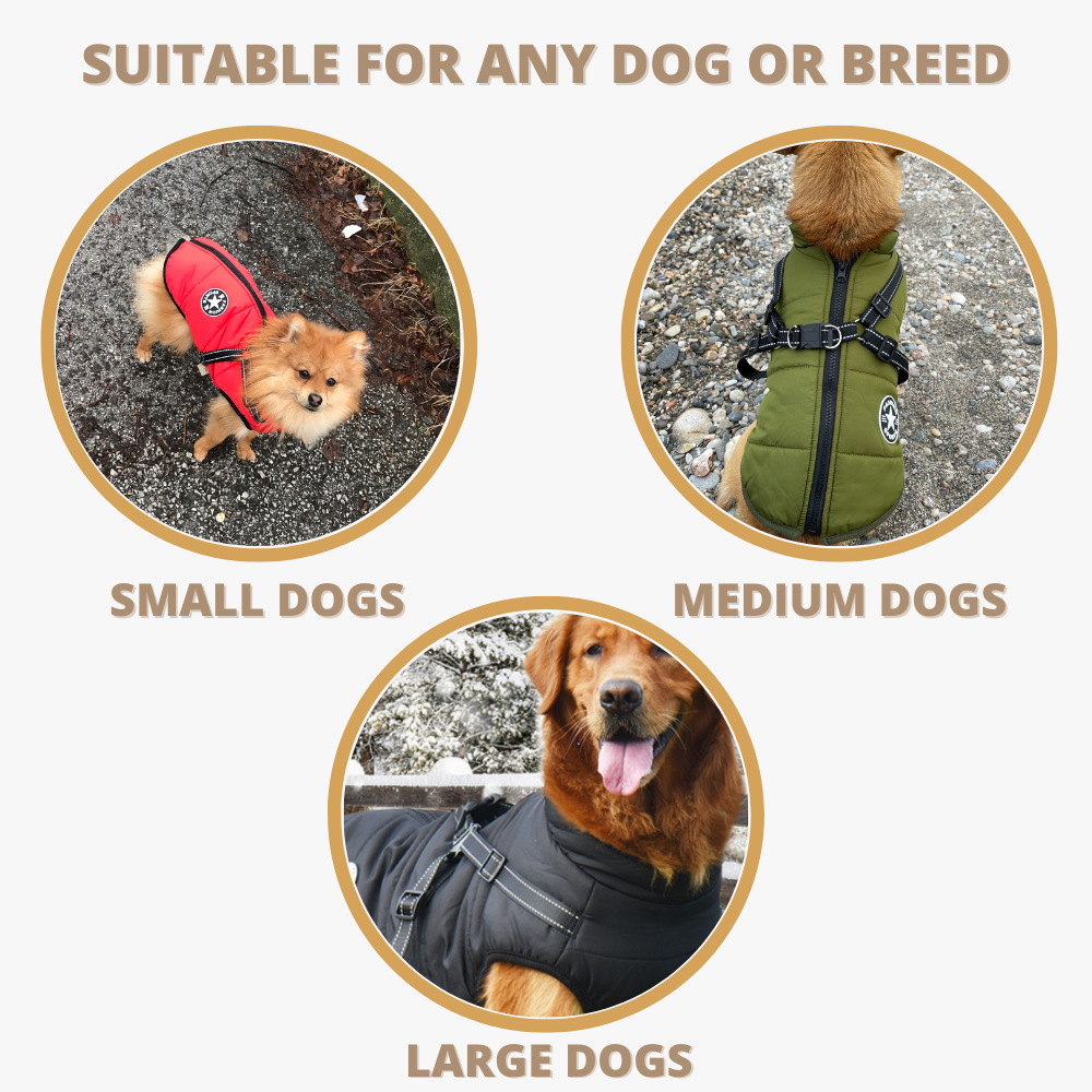 Withhis new jacket, your pup will be able to go outside with you for hours without being cold, while being safe and comfortable. He'll also be able to play with other dogs!